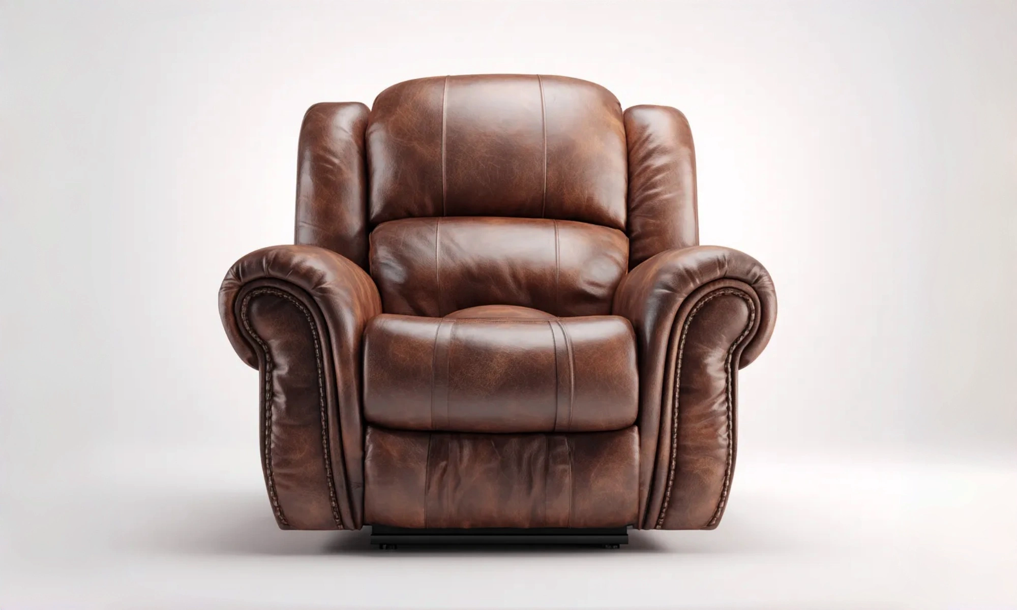 Sillón de cuero auténtico en color marrón oscuro, diseñado para el salón. Ofrece una sentada cómoda y estable gracias a su acolchado generoso, respaldo alto y reposabrazos acolchados. Su estilo clásico con detalles decorativos aporta calidez y elegancia, siendo ideal para el uso diario en interiores.